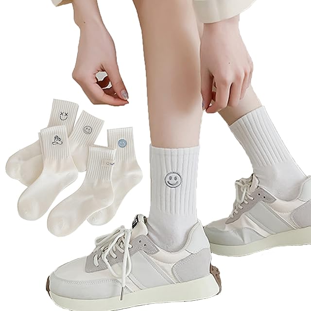 [MonikaSun] 靴下 通学 刺繍 おしゃれ かわいい スポーツ アウトドア 柄物靴下 春夏用 綿 蒸れない靴下 脱げない スクールソックス くるぶし まとめ買い 中学生 高校生 レディース 22~25cm (白-2#) (白-1#) | AVENIR
