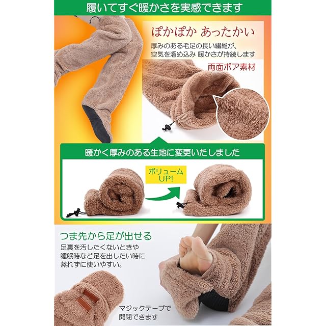 【寒くて眠れない方に】足が冷えて寝れないとお困りの方、足カバーを履くことにより睡眠がより快適に。足先が出せる仕様ですので不必要に足裏を暖める心配もなし。