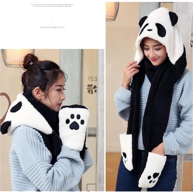 [IPENNYE] アニマル帽子 マフラー 手袋 帽子 レディース ふわふわ フード付マフラー スカーフ ミトン 耳付き パンダちゃん もこもこ ボア あったか お出かけ 女の子 彼女 誕生日 クリスマス 新年 プレゼント 写真撮る 防寒対策 秋冬 | AVENIR