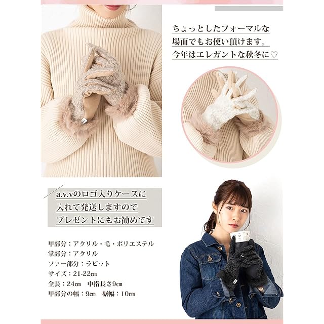 ✅甲部分:アクリル・毛・ポリエステル 掌部分:アクリル ファー部分:ラビット サイズ:21-22㎝ 全長:24㎝ 中指長さ9㎝ 甲部分の幅:9㎝ 裾幅:10㎝ 中国製