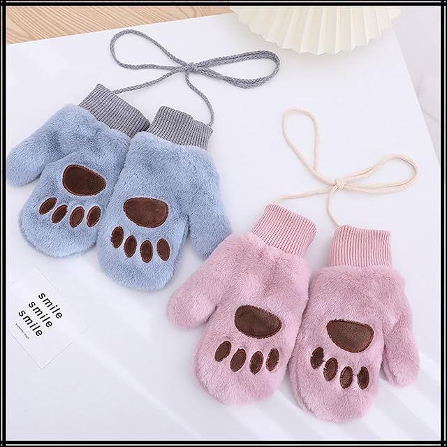[ホワイトファング] 手袋 ミトン 防寒 もこもこ かわいい くま おしゃれ 暖かい 通学 紐付き レディース NT159(ベージュ)