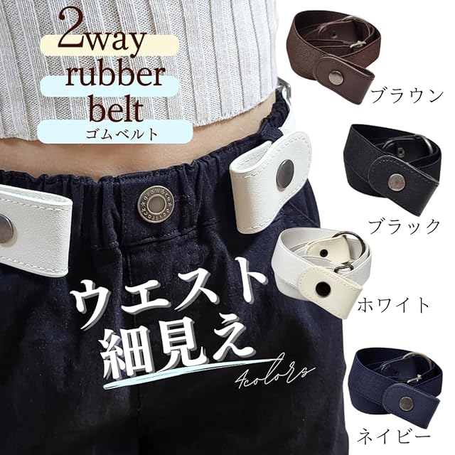 【製品概要】3weyゴムベルト バックルがないので簡単装着できます。ベルト レディース、メンズ学生ベルトとしてもs使えます✨ブラック、ネイビー、ホワイト、ブラウン4色展開です。レディース・メンズ・学生用と、年齢性別問わず使用できる便利なゴムベルト!