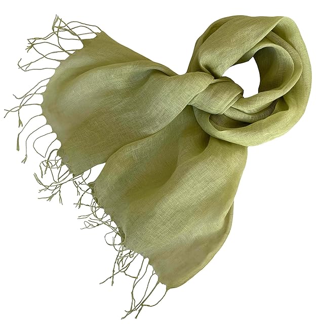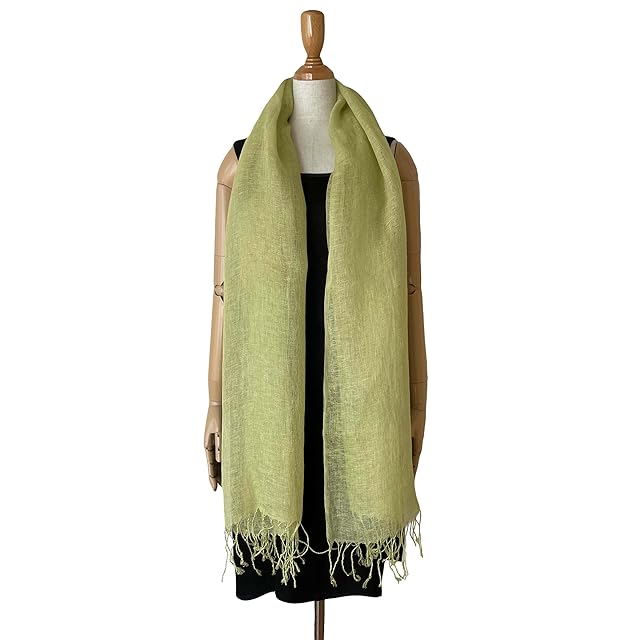 [きゃら] ヘンプ 麻 ストール 無地 60×180cm (薄い黄緑)