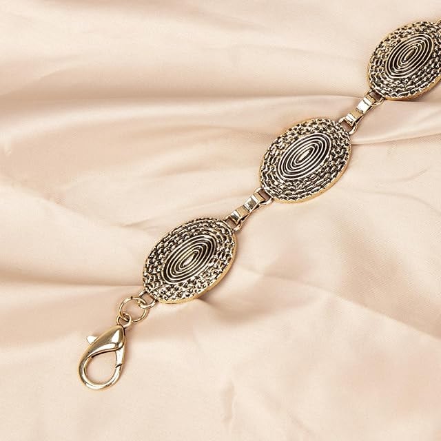 亜鉛合金。レトロチェーンベルト ヴィンテージウエストチェーンは、結婚式、ティーパーティー、教会やパーティーなどの特別な機会に適しています。 春 / 夏 / 秋 / 冬の長さ: 115cm / 45.3インチ。幅: 2.5cm / 1.0インチ。重量 125g。 適したウエスト範囲: 65-90cm / 25.6-35.4インチ ウエストチェーンのデザインの特徴: 細かい生産、絶妙なデザイン、細かい質感。 レトロチェーンベルトチェーンは、このベルトのユニークな個性を生み出します。 日常着用のミディアムウェイト。 このヴィンテージウエストチェーンは装飾的な役割を果たすだけでなく、ボディとウエストを縛り付けて上品でスリムな体型を見せます。 ご自身や母親、奥様、姉妹、ガールフレンド、その他のエレガントで自信のある女性への理想的な贈り物。質の高いサービス: ご質問やご要望がある場合は、お気軽にお問い合わせください。 24時間以内に解決できるよう最善を尽くします。