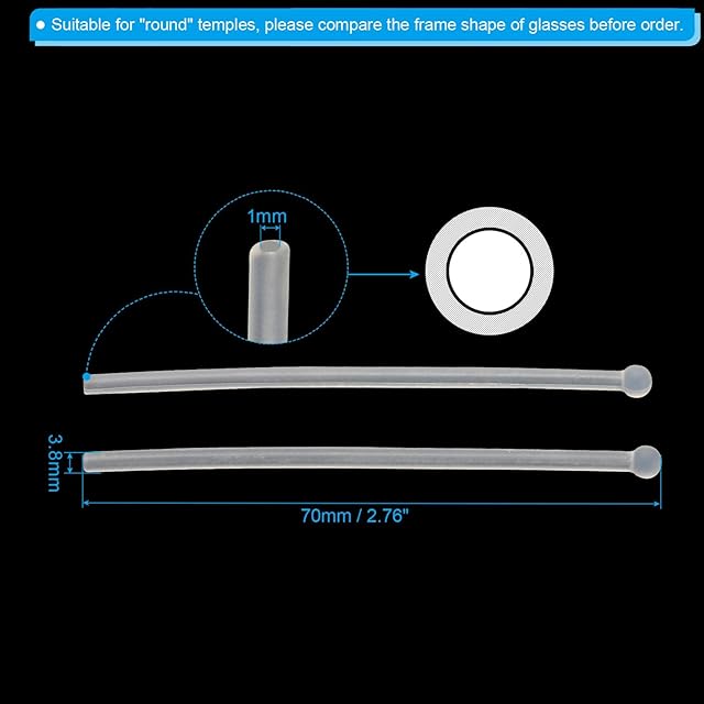 カラー: ホワイト; 材料: シリコーンゴム; 穴のサイズ: 1 x 3.8 mm(ID*OD); メガネ脚の範囲: 1-1 mm直径; サイズ: 70 mm(L); パッキングリスト: 3ペア x メガネのテンプルチップ