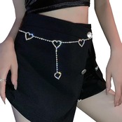 [OYUEGE] ベルト レディース 細ベルト ウエストチェーン ラインストーン 中空 ハート型 ボディチェーン 腰部飾り 女性 アクセサリー