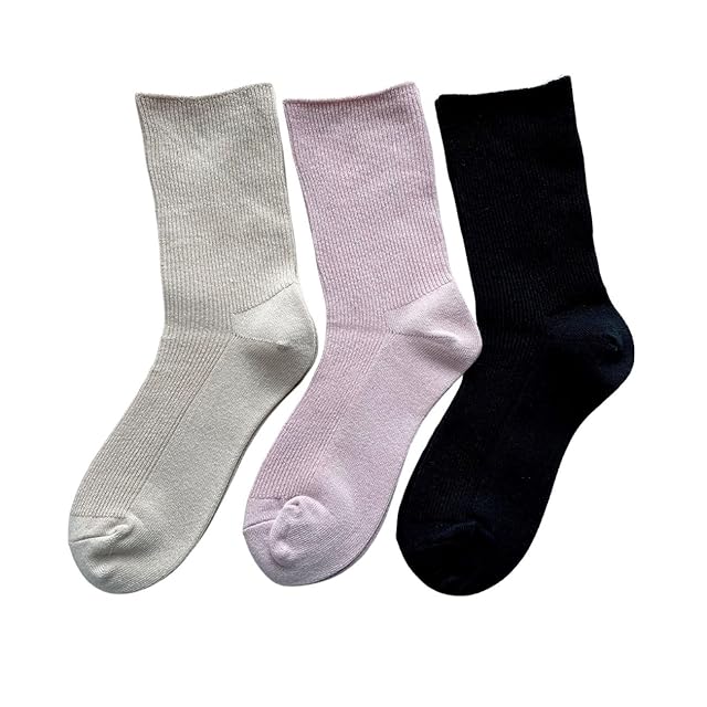 【サイズ】22-24cm 3足セット。色はお任せください。画像のような3足です。口ゴムなし、ゆったり靴下