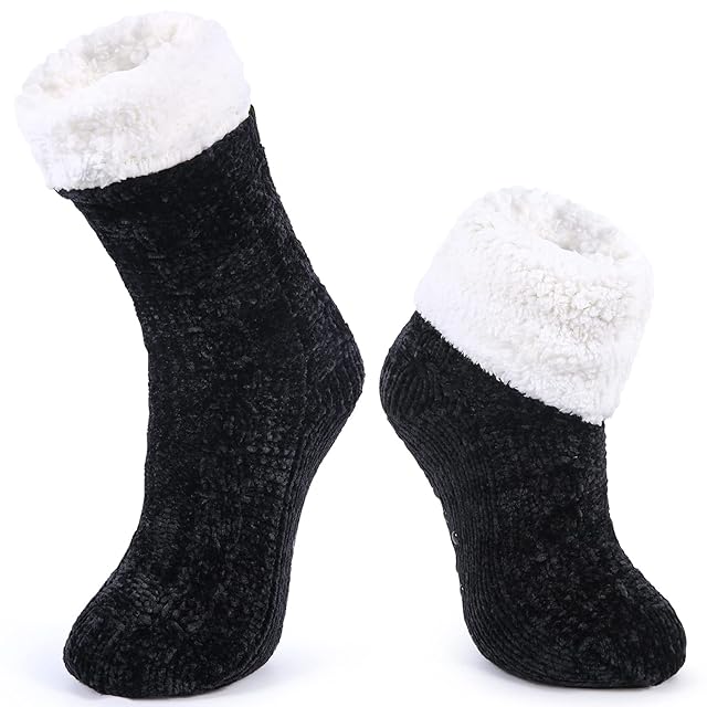 [Larosaeos] レディース靴下 ルームソックス メンズ 室内履き ルームシューズ 滑り止め加工 裏起毛暖かい もこもこ 冷え対策 男女兼用 ホーム 眠る 秋 冬 くつした 靴下 ギフト 自宅仕事用 (ブラック) | AVENIR