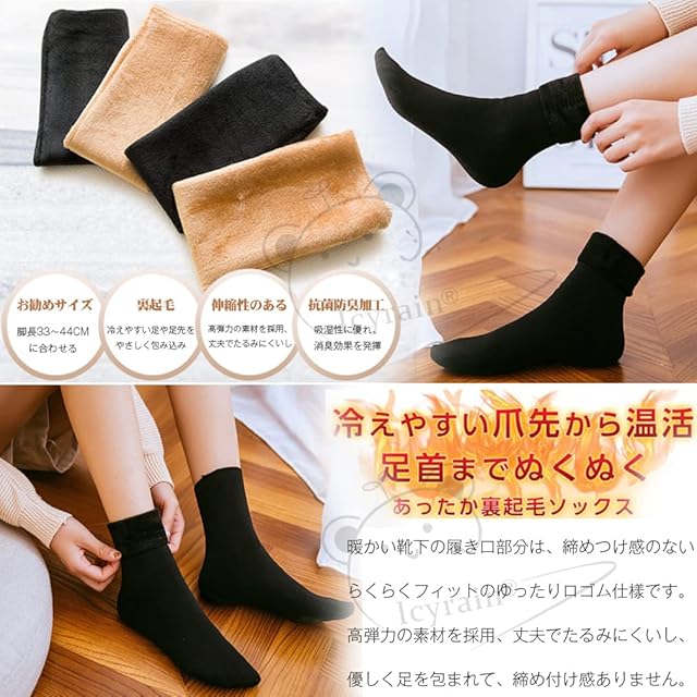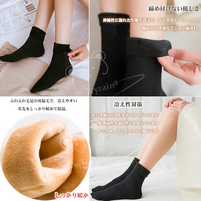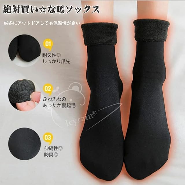 [Icyrain] 靴下 レディース 裏起毛 もこもこ ソックス 暖かソックス 靴下 <3足組・4足組> 冬 厚手ソックス 極厚防寒 ぽかぽか スキー 室内 アウトドア 無地 黒 冷え性対策 温活 可愛い(フリー, 0B黒*3) | AVENIR