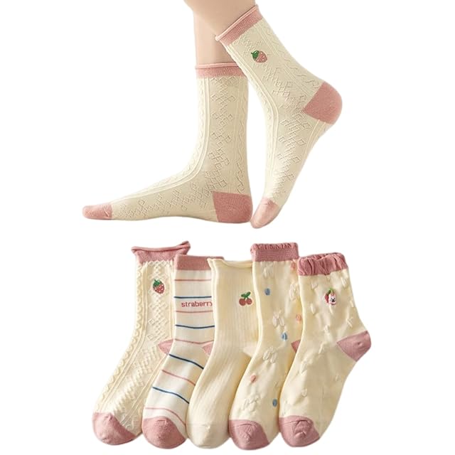 [matakoko315] 靴下 クルーソックス 5足セット かわいい くま うさぎ デザイン 伸縮 履き心地 カジュアル レディース くつした 可愛い 綿 セット 通気性 春夏秋冬 通年 (5足セットC) | AVENIR