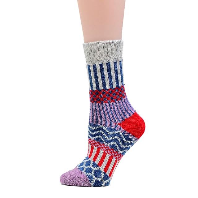 (コナミヤ) Konamiya レディース冷え取りウールソックス 足元を おしゃれに 柄 クルーソックス かわいい 防寒 冷えとりソックス パイル編みでぬくぬくあったか靴下 5足セット Aタイプ5足