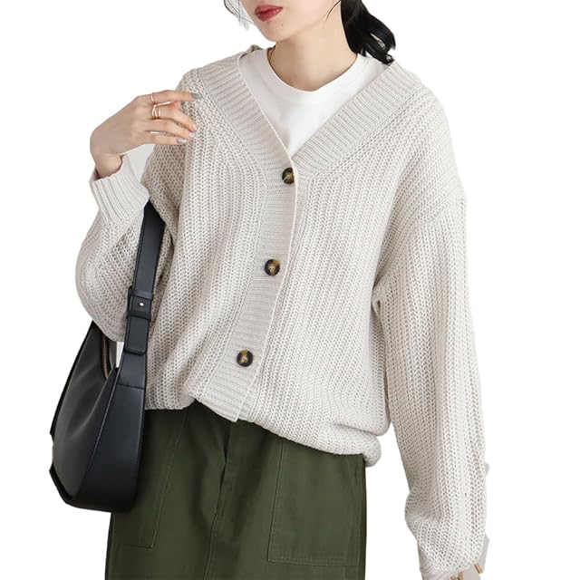 [アットワン]ATN-0012 ニット カーディガン レディース セーター トップス Vネック 長袖 オーバーサイズ ゆったり 大きいサイズ オフィス きれいめ 通勤 通学 人気 春物 春 秋 冬 緑 グリーン 黒 ブラック ベージュ グレー(4L-5L LT-GRAY) | AVENIR
