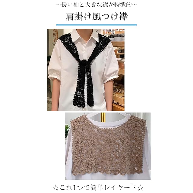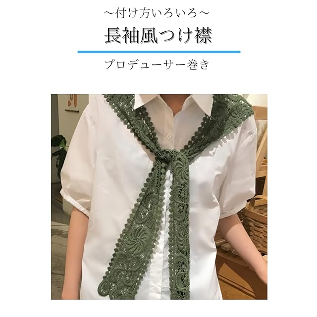 【使用シーン】入園式、卒園式、卒業式、入学式、発表会、お誕生日会など様々なシーンで活躍できるつけ衿。普段着に変化をつけたい高校生、大学生、OLにおススメのつけえり。社会人、大学生、ママ、奥様などには合コン、街コン、女子会、コンパ、同窓会、パーティーなどで普段着をよりカジュアルに。夏場で空調が効いている部屋での冷房対策に大活躍な付け襟です