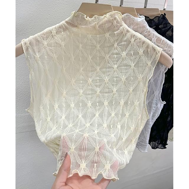 [YIXUANAI] タンクトップ レディース ハイネック ノースリーブ カットソー インナー キャミソール 立て襟 襟付き 紫外線対策 重ね着 レース 付け襟 タートルネック シースルー トップス uvカットトップス UV対策 薄手 ブラウスシャツ チュールレース (Free, 黄緑) | AVENIR