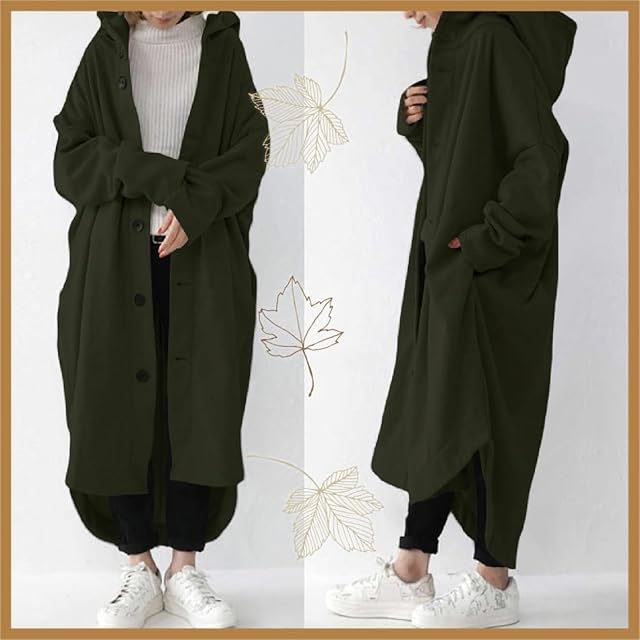 [Maison de TAO] メゾンドタオ コート パーカー 羽織り 羽織 軽 アウター カーディガン フード 付き ロング ビッグ 長袖 春 秋 冬 大きい レディース (カーキ, XXL) | AVENIR