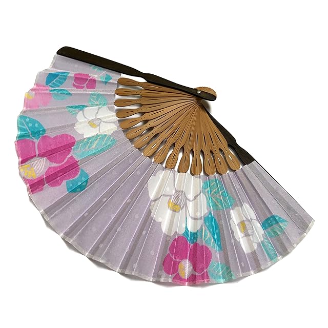 婦人用 扇子 (扇子袋付) かわいい丸みのあるデザイン、優しい色合いのつばきの柄が特徴です。