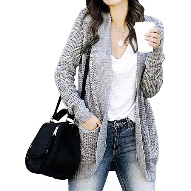 [エアバイ] ニット カーディガン ワッフル編み 長袖 ミドル丈 秋 冬 カジュアル アウター レディース オーバーサイズ ストレッチニット コート レイヤード ギャル タイト ビジネス トップス リブ ニットソー カーデ ポケット ポンチョ スリム パジャマ ライトアウター 体型カバー 厚手 秋冬 韓国 学生 学生服 上着 前開き きれいめ ゆるい ゆったり グレー 3A-A20-GY2XL | AVENIR
