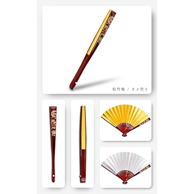 結婚式やお祝いの場に黒留袖や色留袖などの和装で出席する際は必ず持たなくてはならない末広(扇子)です。漆とおなじ成分の「カシュー塗料」を使用し高級感と気品の高さを備えています。サイド部分には縁起の良い蒔絵(まきえ)風の柄をあしらいました。お祝いの場にふさわしい末広です。