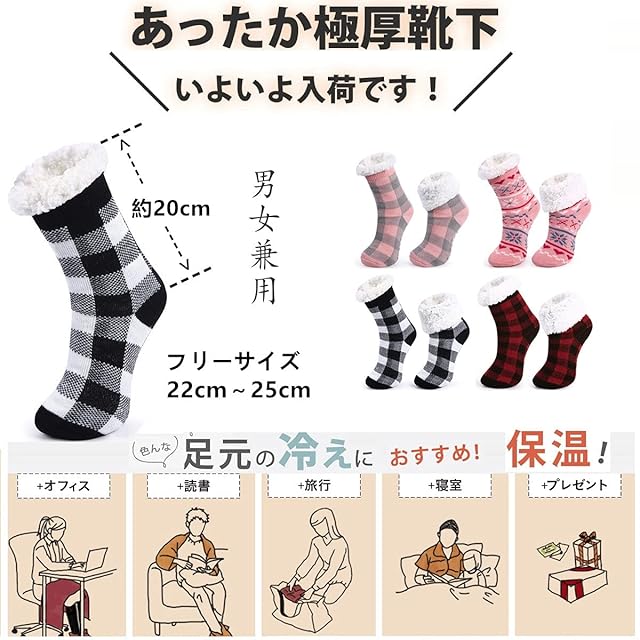 [Ksakura] ルームソックス レディース靴下 メンズ 室内履き ルームシューズ 裏起毛 滑り止め加工 ロング靴下 ストレッチ 厚手 防寒 保温 静音 部屋履き 自宅仕事用 もこもこ 暖かい 冷え対策 男女兼用 (ピンク1) | AVENIR