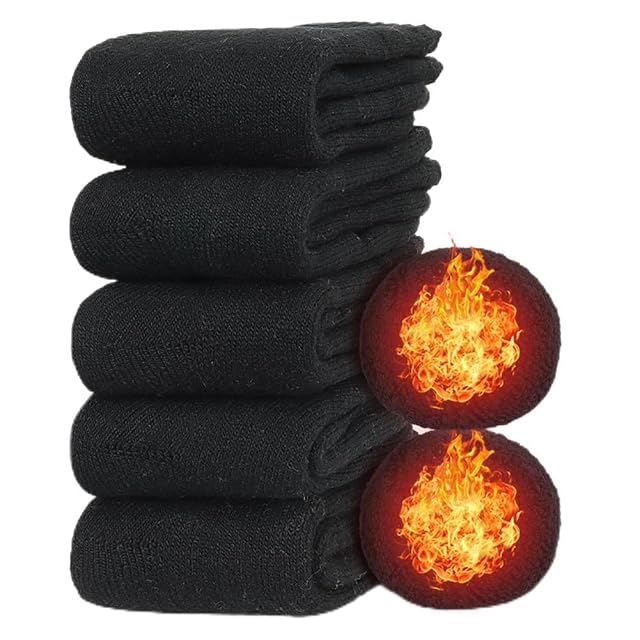 [APIKIE] 靴下 レディース ソックス 冬 【速熱38℃恒温・極暖零下防寒】 【雲を踏む心地よさ・肉厚裏パイル】 ウールソックス 防寒靴下 裏起毛ソックス 防寒保温 防菌消臭 ソックス厚手 伸縮性 室内 アウトドア 登山 (ブラック*5) | AVENIR