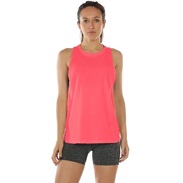 [icyzone] タンクトップ 緩い ワークアウト シャツ 通気 速乾 軽量 レーサーバック ランニング ジム ヨガ ダンス トップス レディース 3枚組(L、ブラック/ダスティオレンジ/ネオンピンク) | AVENIR