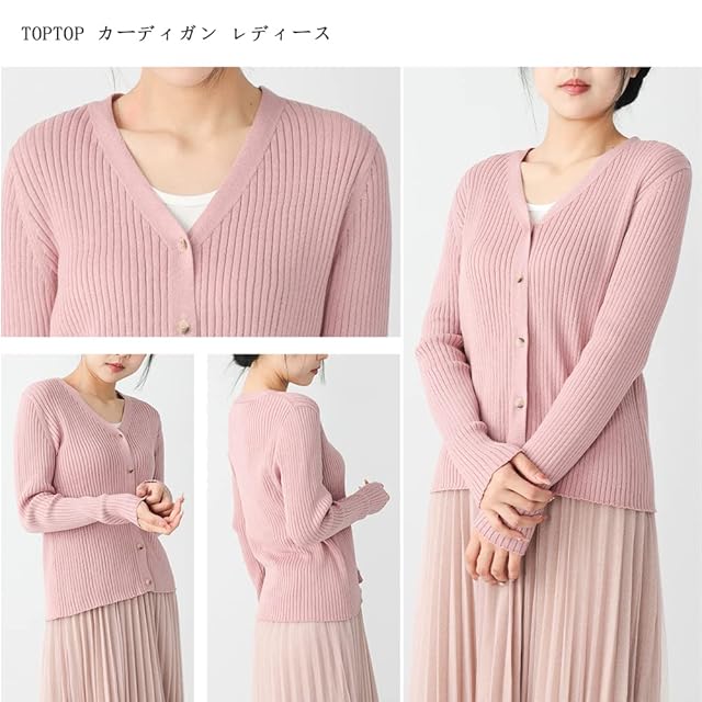 [TOPTOP] カーディガン レディース Vネックカーディガン レディースカーディガン レディース 春夏秋カーディガン 長袖 ニット 無地 セーター ショート丈 羽織りレデイース カーディガン トップス 通勤 通学カーディガン (S, ライトピンク リブ) | AVENIR