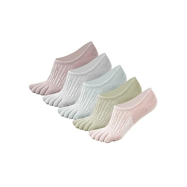 [DAMILY] 5本指ソックス レディース 夏用 靴下 五本指 綿 くるぶし スポーツ用 蒸れない 脱げない スニーカーソックス 女性 ショート丈 くつした おしゃれ 夏 五本指靴下 カラフル 5足セット 22-25cm (通気5足) | AVENIR