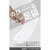 伸縮性のあるナイロン製の足袋です。よく伸びるのでつま先が詰まって痛みを感じることなく、長時間履いていられます。