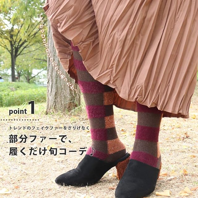 [box408] レディース 毛混であったか 部分ファー ハイソックス カジュアルネップ 4足セット