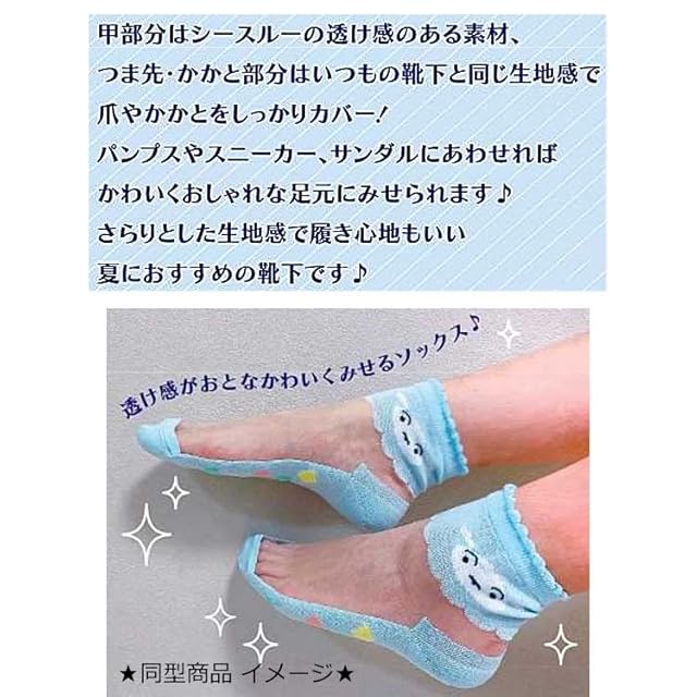 ちいかわ ハチワレ うさぎ達の何気ない日常を描いた Twitterに投稿される漫画が大人気イラストレーターのナガノが描く[ちいかわ]グッズにまたまた可愛いnewアイテム登場こちらはキュートな[シースルーソックス]甲部分はシースルーの透け感のある素材つま先&かかと部分はいつもの靴下と同じ生地感で爪やかかとをしっかりカバー!パンプスやスニーカー、サンダルにあわせればかわいくおしゃれな足元にみせられますさらりとした生地感で履き心地もいい夏におすすめの靴下ですほかにもいろんなグッズがあるのでお気に入りをみつけてくださいサイズ:約23-25cm素材:ナイロン/ポリエステル/その他