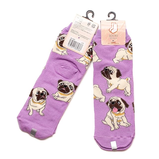 2足セット パグ レディース ソックス Pug Socks ペットとアニマルソックス Pet & Animal Socks SD-2001 ペットラバーズ パープル