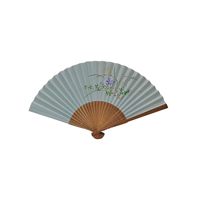 ・日本製の女性用扇子・グリーン地にきれいな桔梗柄のお扇子です・手作業にて切り抜きした手すき和紙の裏側に絹を貼っております・骨部分は、唐木となります・図柄や色合いが写真とは多少異なる場合がございます。・母の日のプレゼントにもおすすめです