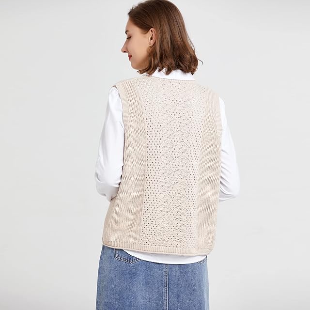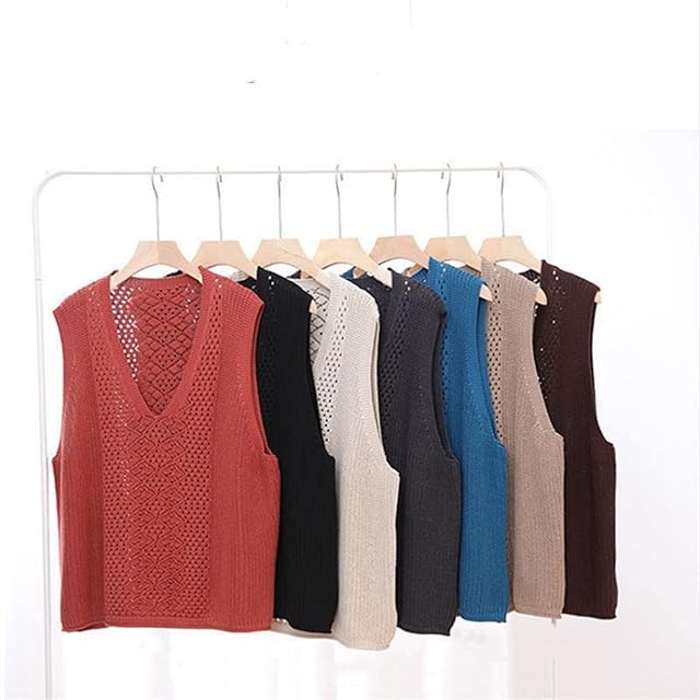 [KOEKOI] ニットベスト レディース ベスト 刺繡 トップス カジュアル 着瘦せ 無地 透かし レトロ 編み風 大きいサイズ 重ね着風 チョッキ 袖なし ニット セーター おしゃれ Vネック きれいめ ゆったり フリーサイズ (青, Free) | AVENIR