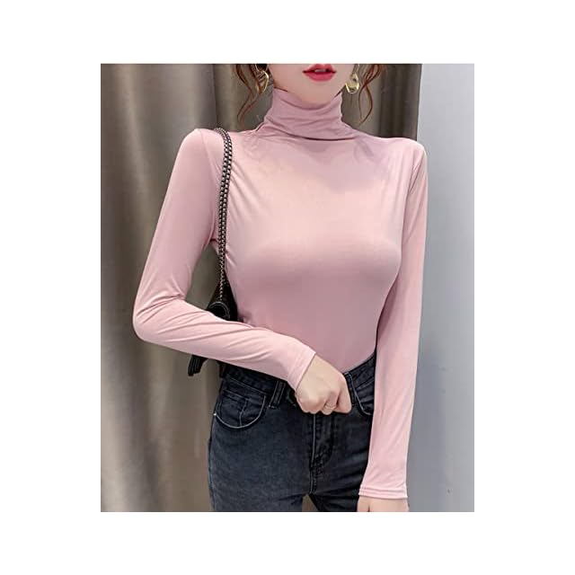 [KOEKOI] ハイネック レディース 長袖 Tシャツ カットソー インナーシャツ 長袖 大きいサイズ タートルネック レディース 綿 防寒インナー ゆったり チュニック インナー 無地 伸縮性 防寒 暖かい 重ね着 (桃, M-L) | AVENIR