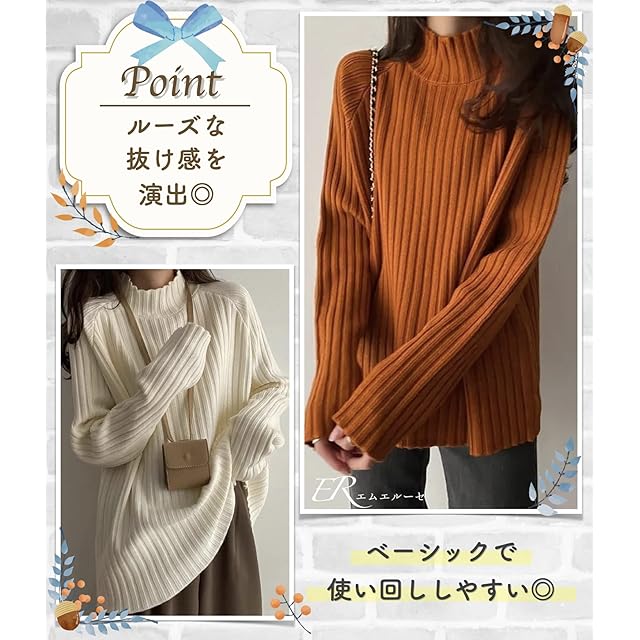 窮屈さのない緩めのハイネックデザインが、首元をスッキリ綺麗に魅せてくれるニットなので、小顔効果も期待できます◎ 着丈はお尻が隠れるほどの長めの丈なので、ボトムスにインしてもアウトでもおしゃれに着こなせます♪ 袖口をロールアップして着ても大人可愛く決まります◎ シンプルなトップスはシーンを選ばず着回せるので、気分に合わせて自分らしいコーデを楽しめます♪ 普段使いはもちろん、通勤や通学、在宅ワークやリモートワーク、デートや女子会、ママ友とのお出掛け、学校行事や子供の送迎、公園やお散歩、キャンプやアウトドアにも合わせやすい◎ 程よくゆとりのあるサイズ感でストレスフリーなので、マタニティーウエアやママコーデとしても活躍してくれます。 部屋着やルームウエアとしてリラックスタイムが満喫できる1着です♪