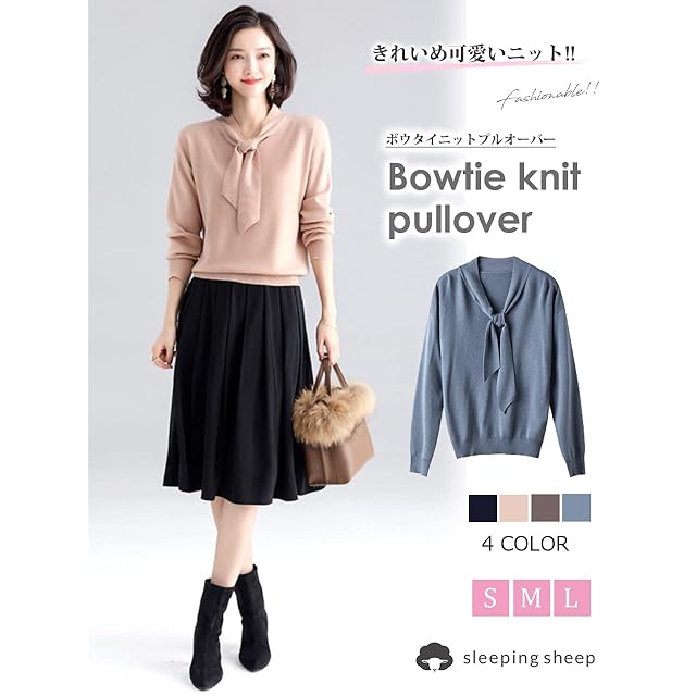品よくきちんと見せが叶う、きれいめ可愛いニットが登場です♪1枚で、雰囲気あるきれいめ感が完成する、ボウタイニットプルオーバー。