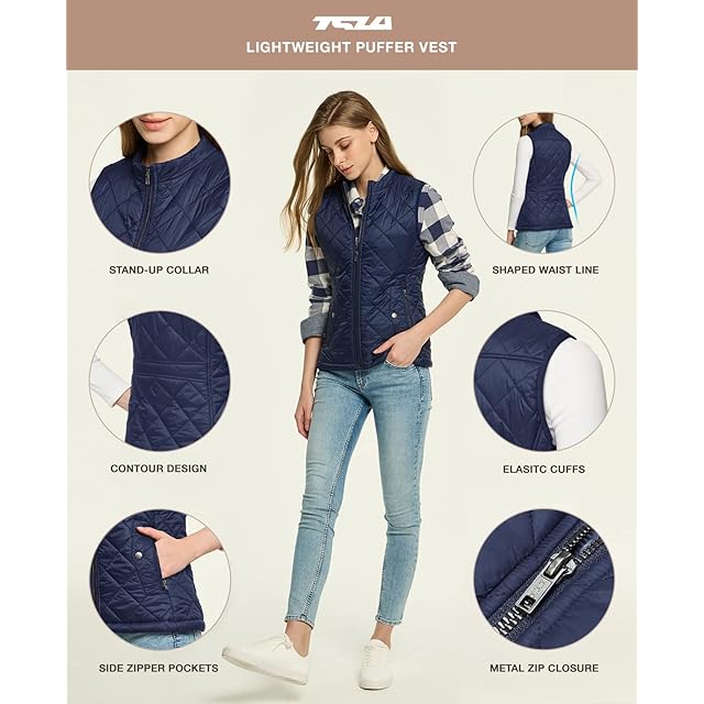 [テスラ] パファー ベスト レディース [軽量・防風・保温] フルジップ アウトドア スポーツ 登山 防寒ベスト 防風 インナー ベスト アウター 防寒着 大きいサイズ XKJ46-NVY_S | AVENIR