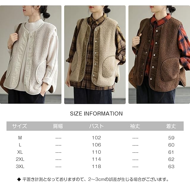 ★ カラー:アイボリー、ブラウン、カーキ サイズ:S M L XL 2XL ◆ 平置き計測となっておりますので、2~3cmの誤差が生じる場合がございます。◆撮影環境やパソコンのディスプレイなどの影響により色が若干違って見える場合もあります。◆色落ちや色移りやすくなるので、浸け置き洗いや濡れたままの放置しないで、他の服と分けて単品で優しく洗濯する上、すぐに形を整えて干してください。