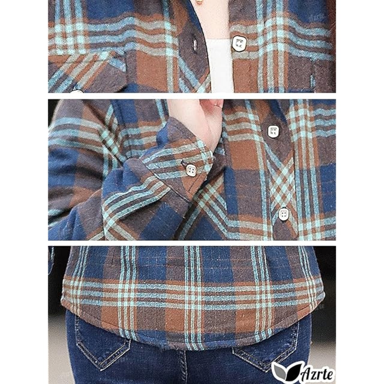 [アズルテ] 裏ボア ネルシャツ チェック柄 レディース 長袖 秋 冬 フランネルシャツ 大きいサイズ ゆったり 裏起毛 寒さ対策 重ね着 女性用 あったか ボア裏地 ボタン チェック 裏ボア 217 XL ブラック | AVENIR
