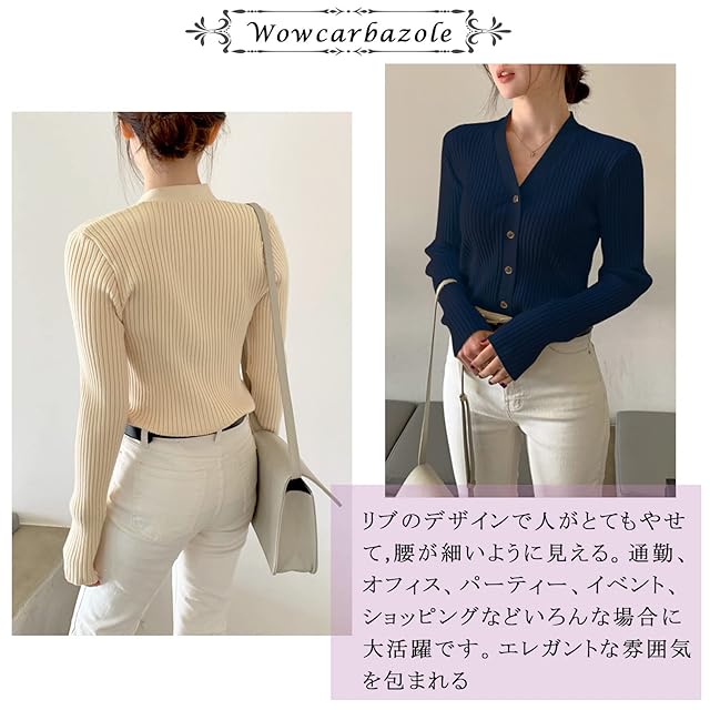 【場合】シンプルなデザインで、普段にはもちろん。通勤、デート、お出かけ、在宅、パーティー、イベント、ショッピングなどいろんなな場合に大活躍です。エレガントな雰囲気を包まれる。リブのデザインで人がとてもやせて、腰が細いように見える優秀ニットです