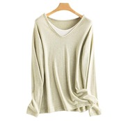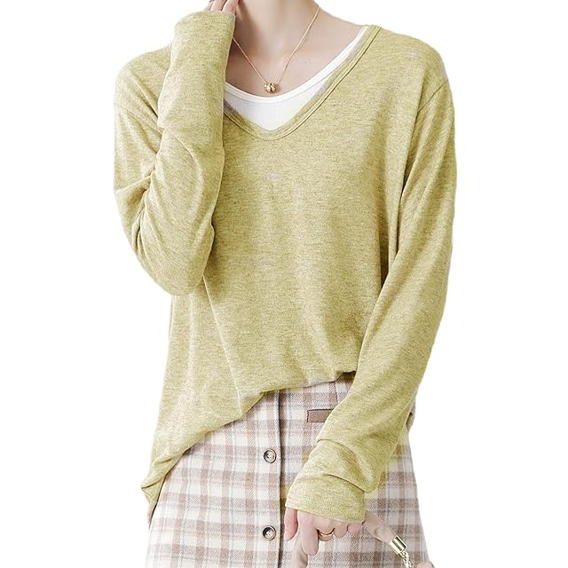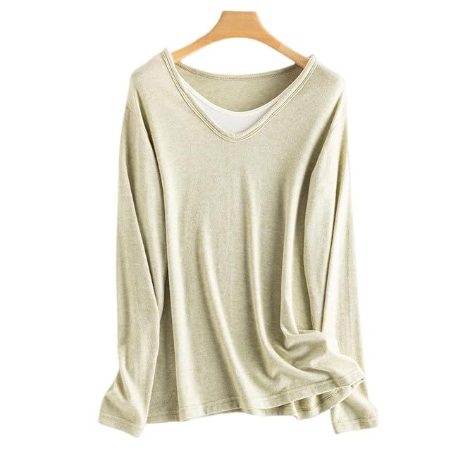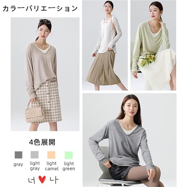[SARADEMUNT] サラデマント〕カットソー レディース 長袖 きれいめ 春 秋 冬 レイヤード プルオーバー Uネック Vネック ニット トップス ゆったり インナー 重ね着 チュニック 大きいサイズ おしゃれ 無地 薄手 柔らか 軽量 220702T-lightgreen | AVENIR