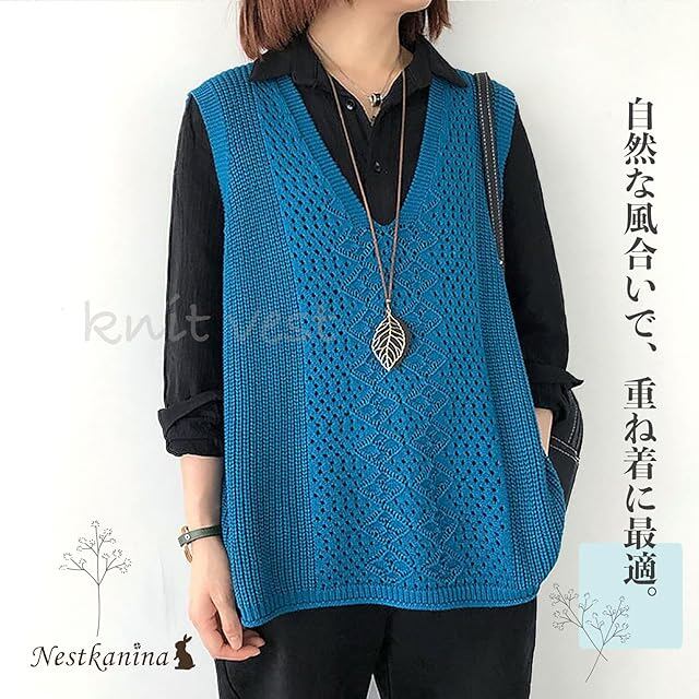 ゆったりとしたデザインのニットベストです。一年を通してお使いになって頂けます。