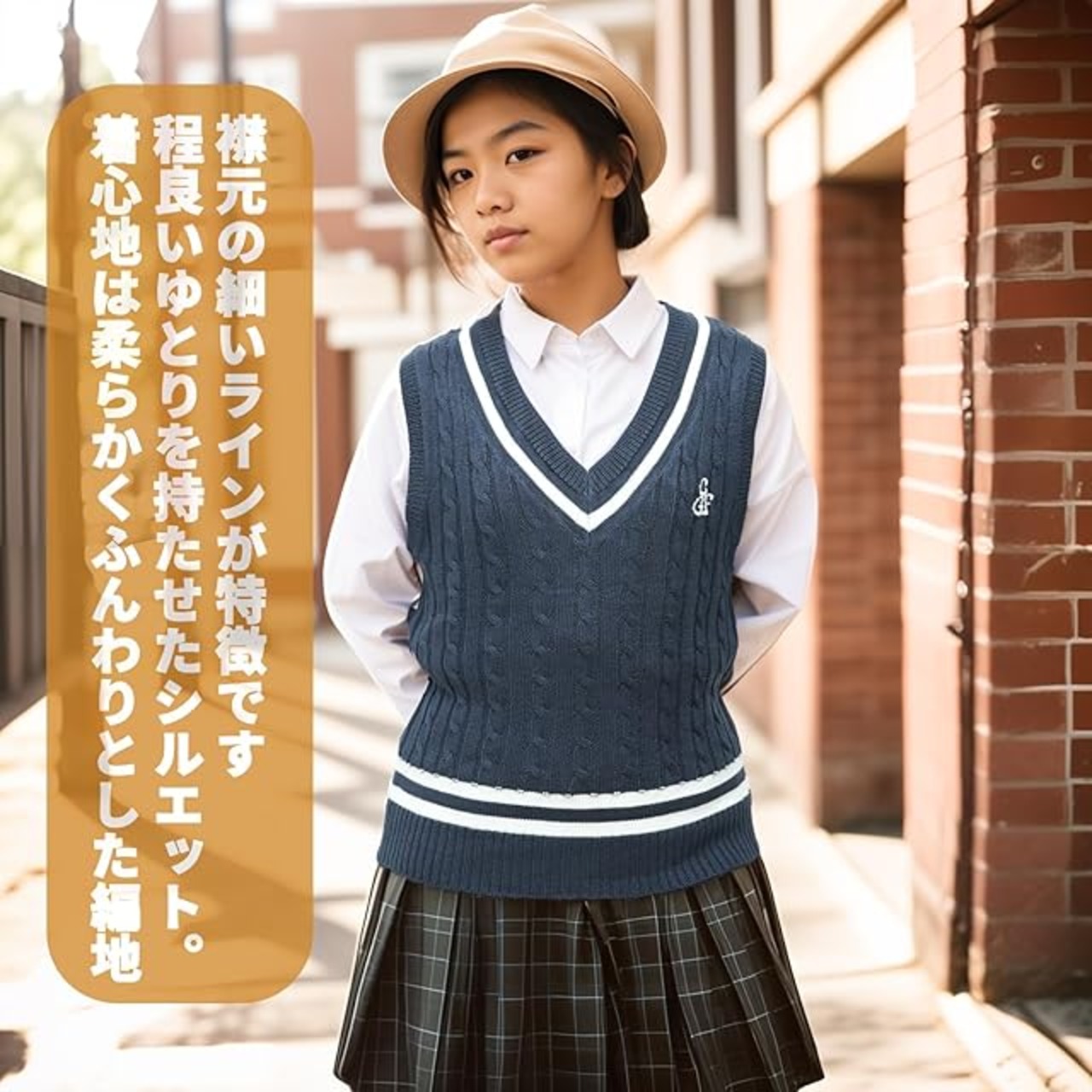 品名:ウォッシャブルVネックベスト 取扱い:洗濯機・ネット使用 サイズ:L 性別問わず着られる 柄:ケーブル柄