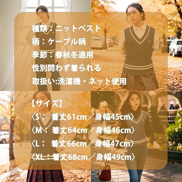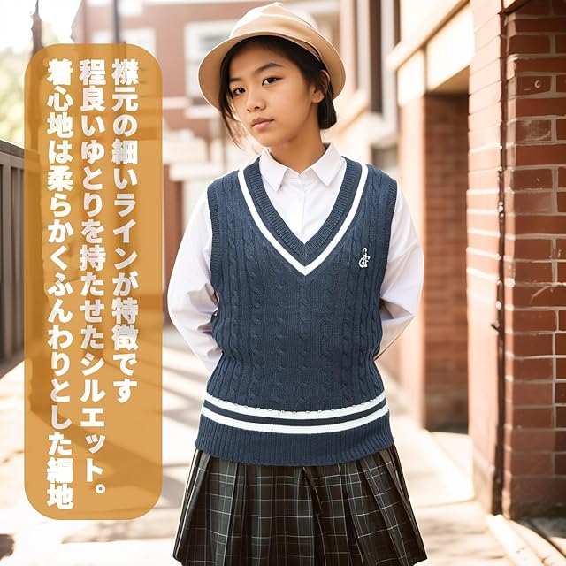 伝統的なケーブル柄で柔らかい印象になるニット。幅広いシャツ&トレンチコートなどのコーディネートでたくさんスタイルに変化できます。ビジネススタイル、或いはカジュアルとして使ってもいいです。オシャレアイテムとして便利です。また、ファッション性を重視したVの開きの大き目なデザインも増えてきており、小顔アピールなどにも有効です。