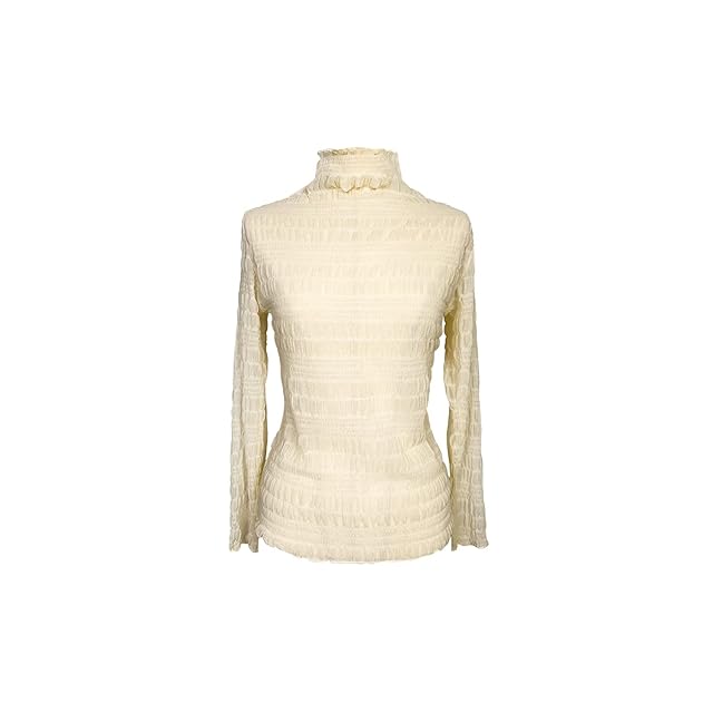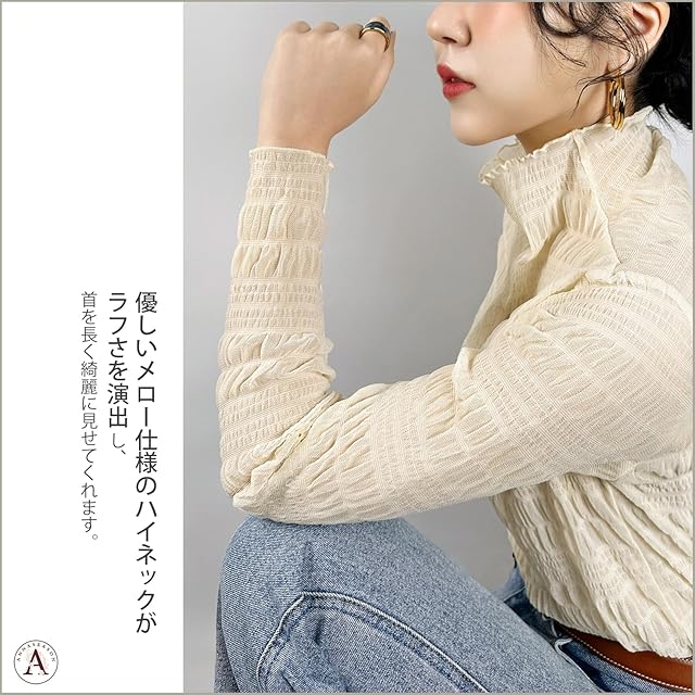 [ANNASEASON] ブランド シアー ハイネック トップス レディース インナー カットソー 長袖 高伸縮性 締め付け感なし シンプル 快適 オールシーズン カジュアル デイリー 重ね着 ブラック アイボリー ベージュ ブルー (アイボリー)