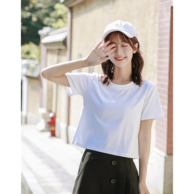 着こなしやすいシンプルデザイン: このショート丈Tシャツ レディースは、ジーンズやスカート、ショートパンツなど、どんなボトムスとも相性抜群。シンプルなデザインで、着瘦せ効果があり、ダンスウェアとしても最適です。日常的に使えるデザインで、1枚でいろいろなコーディネートが楽しめます。