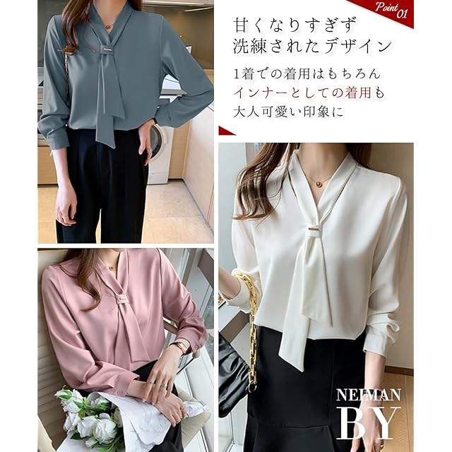 [ニーマンバイ] ボウタイブラウス レディース 長袖 オフィス 上品 エレガント フォーマル リボン シャツ トップス インナー シンプル カジュアル アウトドア トラベル ビジネス スーツ ダンス シニア プルオーバー カラフル 3シーズン スリーシーズン オールシーズン 事務 学生 韓国 軽量 細身 薄 薄手 無地 春夏 冬 夏 春 秋 原宿系 可愛い ゆったり ピンク 3S-N06-PKXL