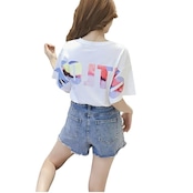 ✅【ゆったりカジュアルな韓国風Tシャツ】 ビッグロゴのバックプリントがオシャレな、韓国風Tシャツです♪ カラフルなバックプリントとオーバーサイズなデザインが流行りの韓国風を演出。 程よい開き具合のクルーネックが首元を細く見せてくれ、半袖は6部丈くらいで気になる二の腕をカバー、身幅もゆったりしていて着痩せ効果抜群。 春・夏・秋はもちろんのこと、冬はレイヤードファッションで、オールシーズン大活躍間違いなしのトップスです!