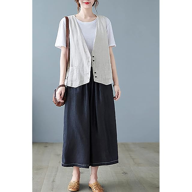 [KOEKOI] ベスト レディース 夏 綿 麻 サマーベスト ジレベスト トップス カジュアル 着瘦せ 無地 薄手 大きいサイズ 重ね着風 チョッキ Vネック 体型カバー カットソー 通勤 ベスト綿麻 カーディガン 袖なし サマーベスト ポケット付き (黒, 2XL) | AVENIR