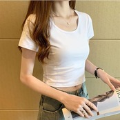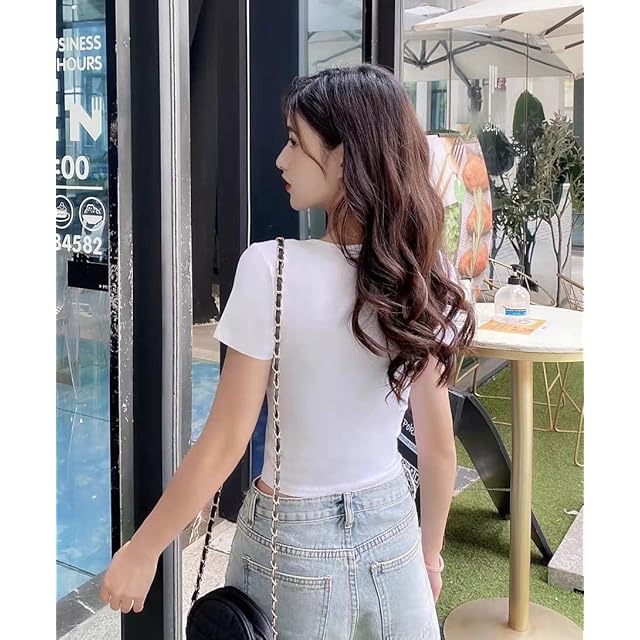 SEYIXU Tシャツ へそ出し レディース カットソー 半袖 ショート丈 Tシャツ ちびT 丸首 無地 クロップド トップス シンプル ダンス 着痩せ 半袖シャツ (A タイプ-ホワイト) | AVENIR